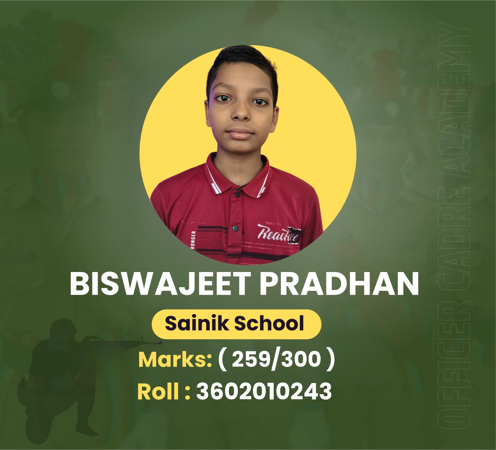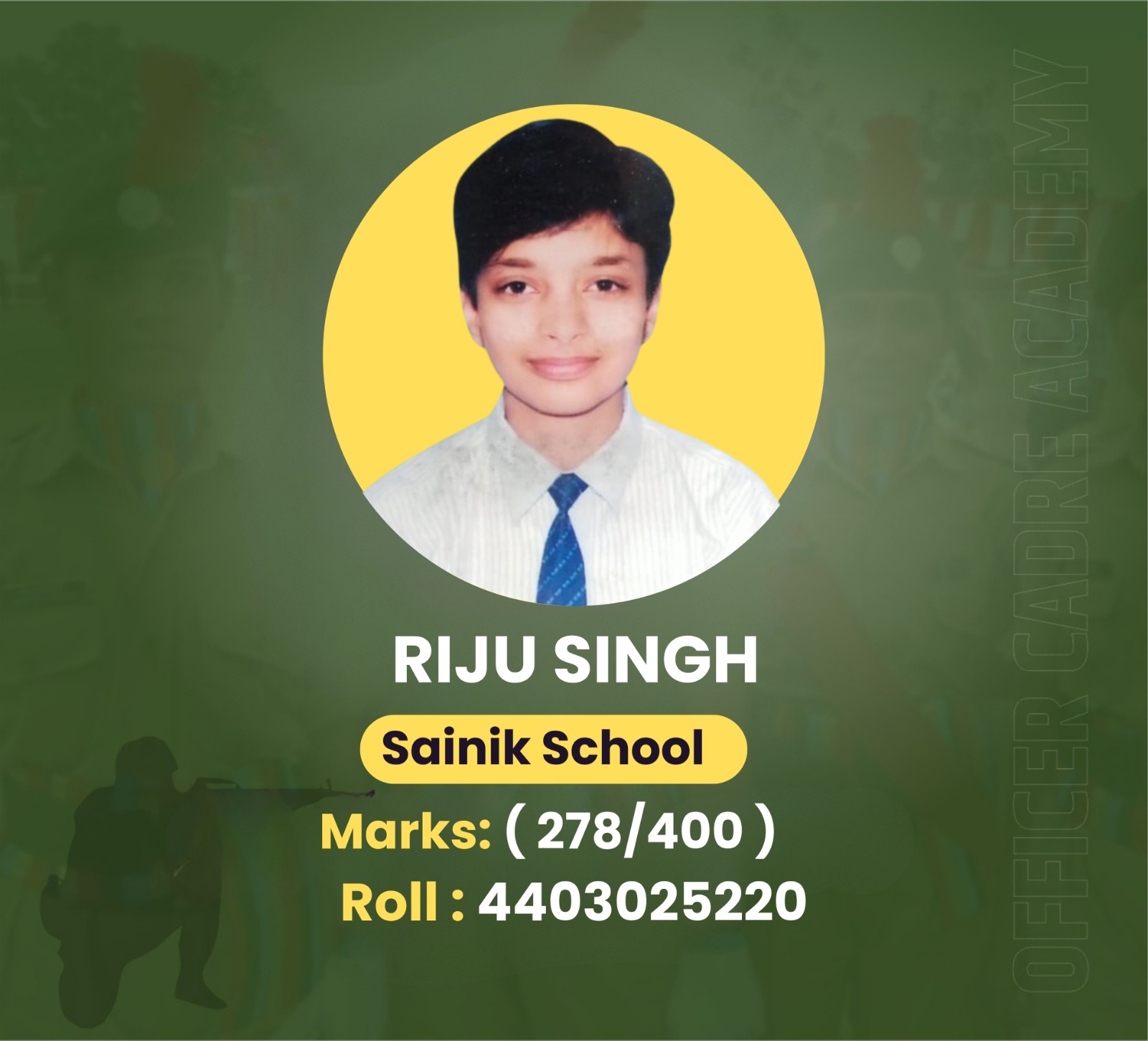 Captain Chandra Bhan, our esteemed mentor at the Officer Cadre Academy, brings unparalleled expertise and dedication to training future leaders. With a distinguished military background and a commitment to excellence, he inspires and guides cadets to achieve their highest potential. His mentorship fosters discipline, integrity, and resilience, preparing cadets for successful careers in the defense forces. Captain Chandra Bhan, our esteemed mentor at the Officer Cadre Academy, inspires excellence and prepares cadets for successful defense careers.